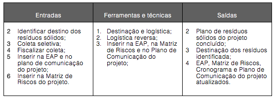 13.6.3 Gerenciar os resíduos sólidos do projeto: Saídas