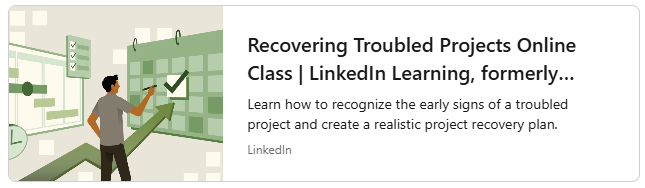 I also decided to do a LinkedIn Learning Office Hours to discuss the course's main topics, including strategies for recovering troubled projects, and answer students' questions.