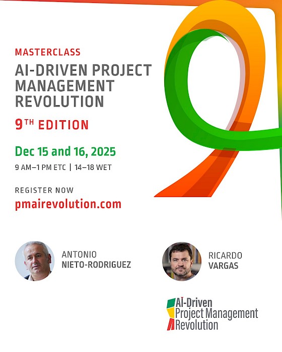 Antonio Nieto-Rodriguez and I are thrilled to invite you to the 9th Edition Masterclass — Embracing AI in Project Management, happening December 15–16, 2025.